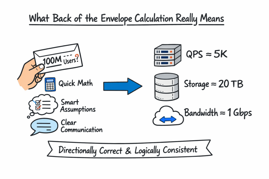 Interviewers actively prefer candidates who say, “Let me sanity-check this number,” over candidates who rush into precise math without context. Back-of-the-envelope calculation shows that you understand uncertainty and can still make progress. That mindset is essential when designing distributed systems under real constraints.