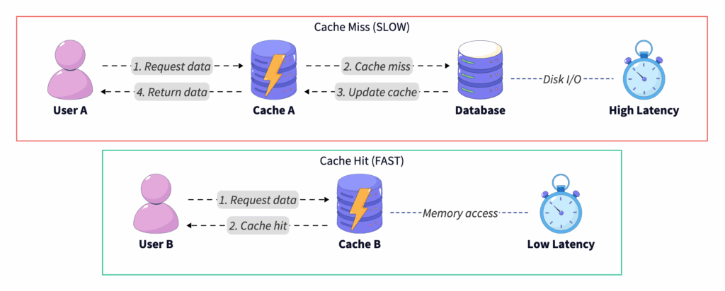 Distributed cache: Tools like Redis or Memcached that provide high-speed, centralized caching across servers.