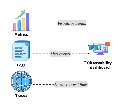 These observability components provide the visibility needed to maintain complex systems, enabling engineers to track how operations flow across distributed architectures.